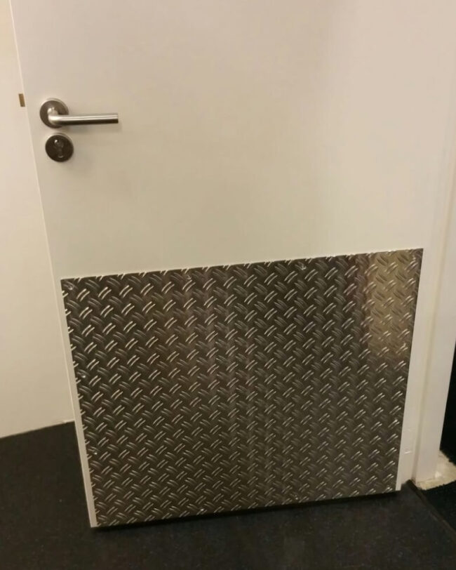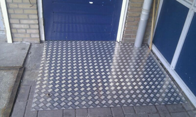 Stalen trap met bordes en tranenplaat treden, thermisch verzinkt
