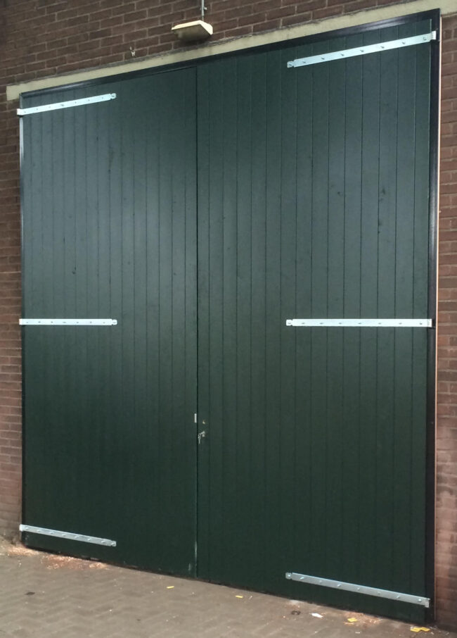 Houten deuren met gepoedercoate stalen kozijnen